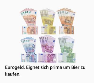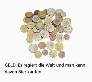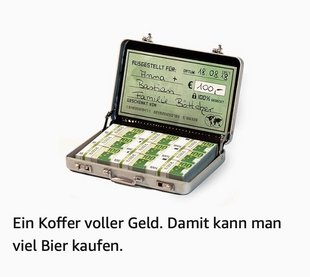 Mit Geld kaufen wir dieses Bier, was wir bei der Party versaufen. Mit Geld können wir auch nach der Party Bier kaufen, falls noch was übrig ist. Mit Geld können wir in unseren Flitterwochen Bier kaufen (und Blutwurst, denn wir fahren aufs Blutwurstfestival nach Frankreich und in Frankreich zahlen wir am liebsten mit GELD).